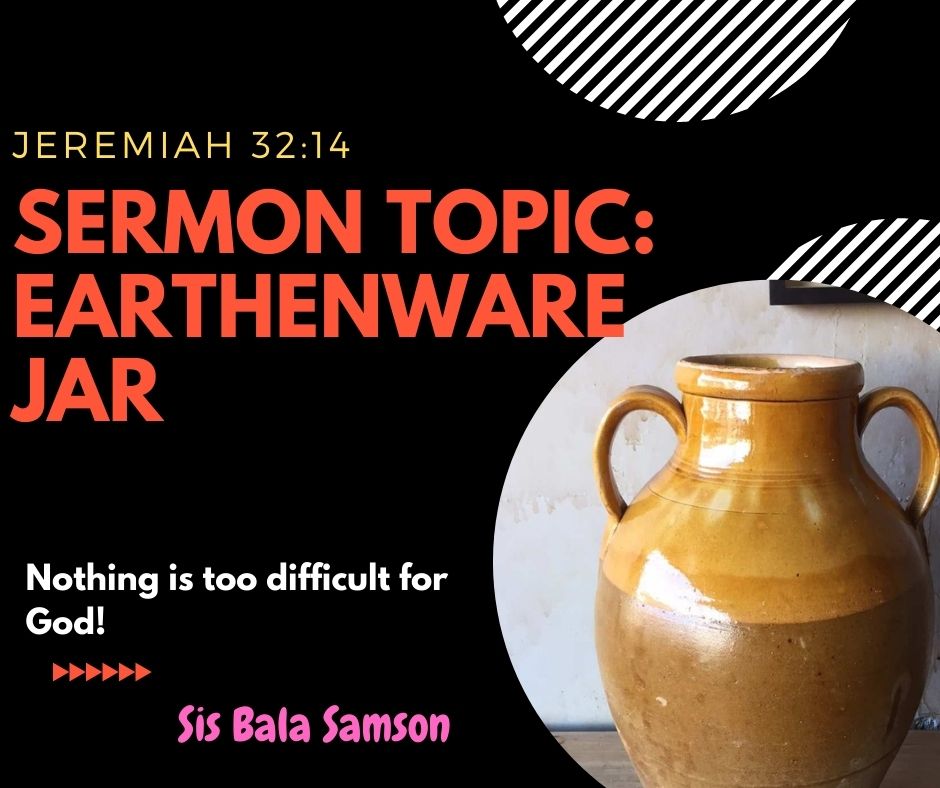 On one side God told that the city will be captured by the enemies and burnt down but on the other hand He told His prophet Jeremiah that He should buy property and keep the sealed deed copy in an earthenware jar, so that it would be safe for a long time. How can an earthenware jar be safe in the midst of war and fire??? Will it not break? What does God want to tell us through this? When it is in the custody of God, the jar can be brittle and fragile; yet, God can preserve it! God through this, told the people to trust Him. Jeremiah believed and said: “Ah Lord GOD! Behold, You have made the heavens and the earth by Your great power and by Your outstretched arm! Nothing is too difficult for You.” (Jeremiah 32:17) Hey friend, bank lockers can fail but not the EARTHERN JAR designed by God, are you listening? Trust Him!