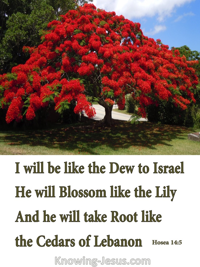 Hosea 14:5 I will be like the dew to Israel; He will blossom like the lily, And he will take root like the cedars of Lebanon.
