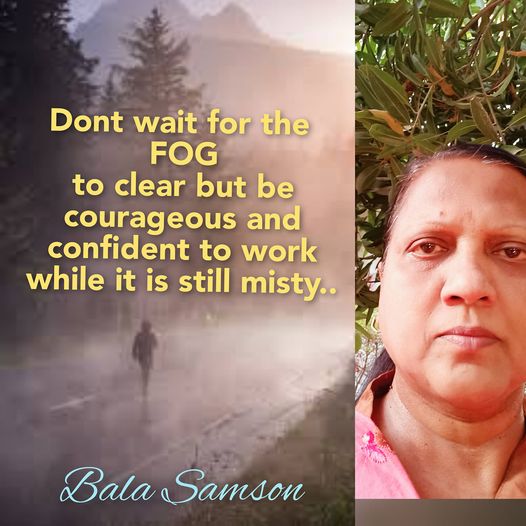 My friend from London one day called me over phone and said,' Bala, here the climate changes suddenly, I just came out for shopping but suddenly I am surrounded by fog, I am so upset.' I told her 'get adapted to the weather where you live, keep going..' She now still lives there and also works there, so roll up your sleeves to work instead of complaining. Fog or no fog, keep moving.....