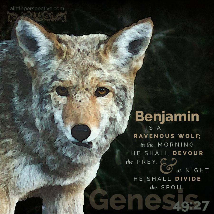 Genesis 49:27 "Benjamin is a ravenous wolf; In the morning he devours the prey, And in the evening he divides the spoil."
